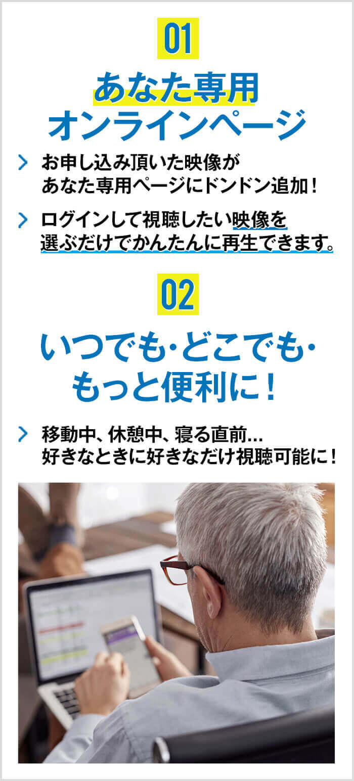 すぐに映像が観たい!というときにポケットからスマホを取り出すだけで簡単にご覧いただけます。