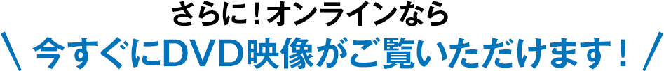(弊社では特段制限を設けておりませんが、お客様がお住まいの国やインターネットの利用環境によっては視聴できない可能性もございます。予めご承知おきくださいませ。) - ※『オンライン視聴サービス』から視聴できる動画は、DVDの映像と全く同一のものとなります。