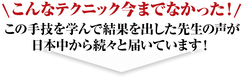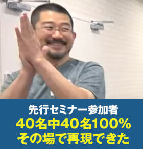 正直、ここまでお伝えしたこの手技の内容はあなたにとっては信じがたい話かもしれません。これまでたくさんの治療法を研究してこられたベテランの治療家さんであれば尚更、「そんな重症患者さんをたった10秒で改善できる手技があるわけがない」とお思いになるのではないかと思います。