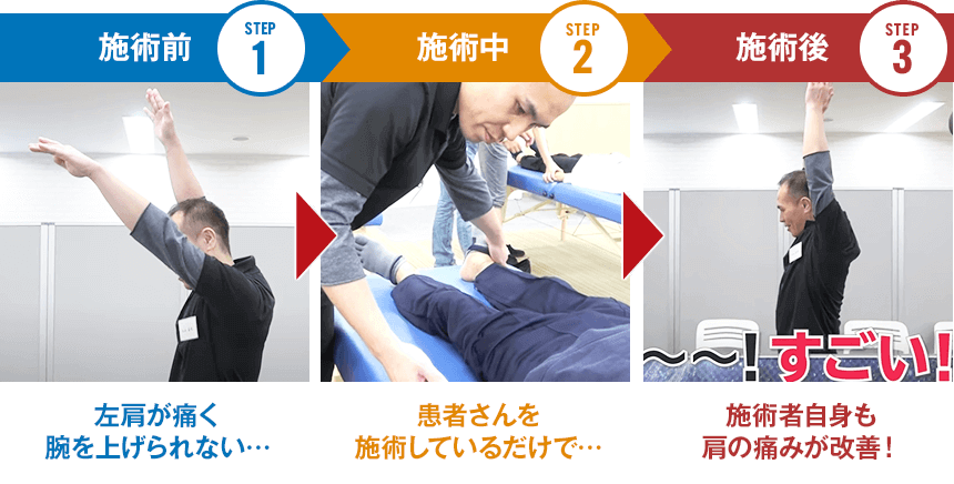 この手技を習得すれば、どんなに重度の症状でも改善できるようになり、施術自体が気持ちいいので患者さんの満足度、リピート率を上げられます。また、過去に類を見ないほど充実したセルフケアも豪華特典として無料で付いてくるので、あなた自身の不調までも改善できるでしょう。