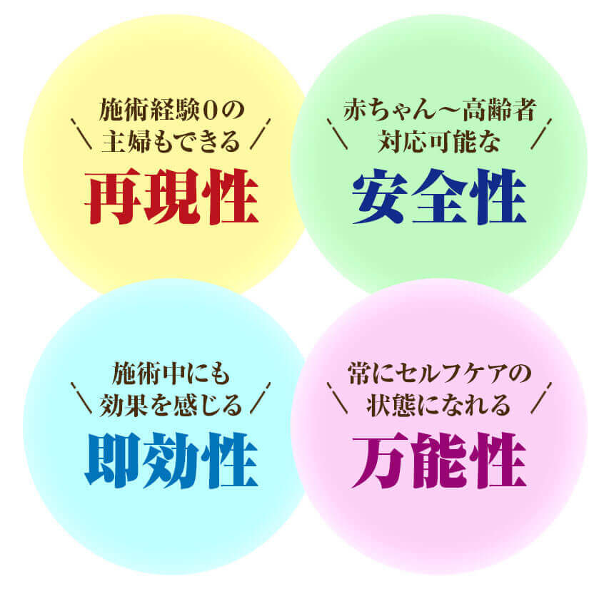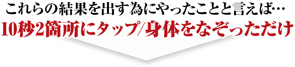 さらに10秒/2箇所にタップ/身体をなぞる、たったこれだけで、患者さんも施術者も治療効果を出せてしまいますので、より一層救える患者様が増え、患者様もあなた自身も笑顔で過ごせる日々が増えていくと思います。